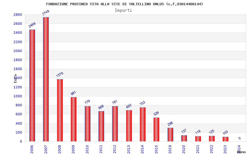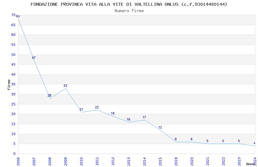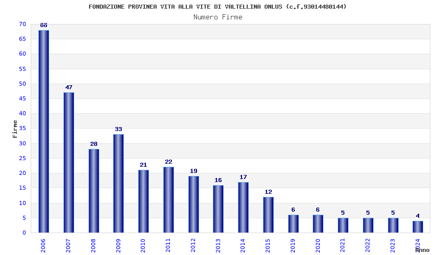 | Anno | Firme | Importi | Media | Naz. | Reg. | Prov. | Comu. |