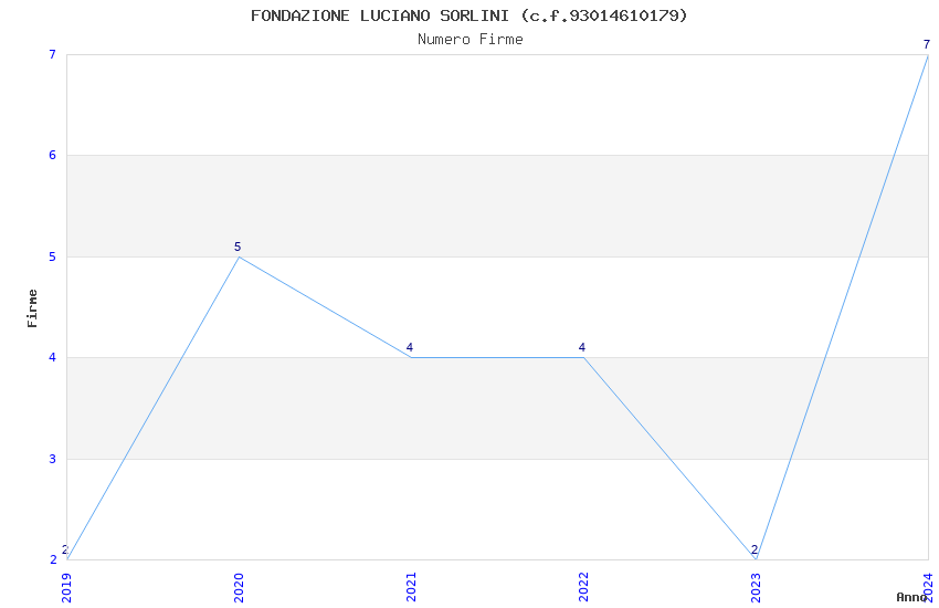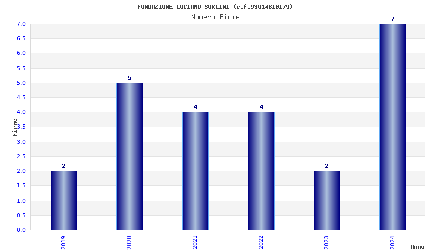 | Anno | Firme | Importi | Media | Naz. | Reg. | Prov. | Comu. |