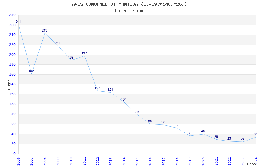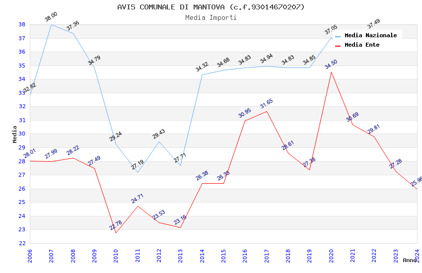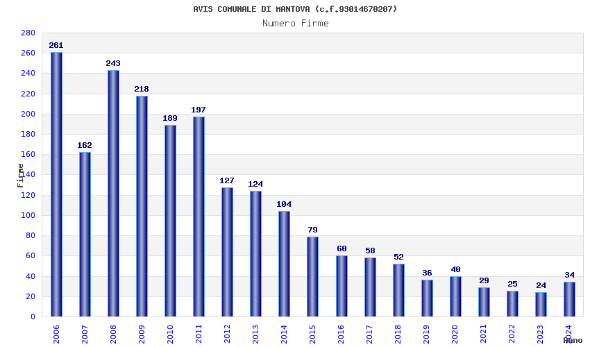 | Anno | Firme | Importi | Media | Naz. | Reg. | Prov. | Comu. |