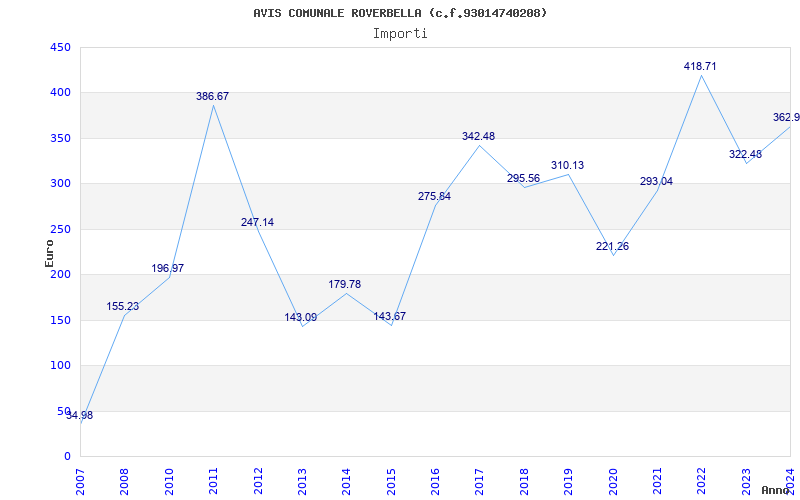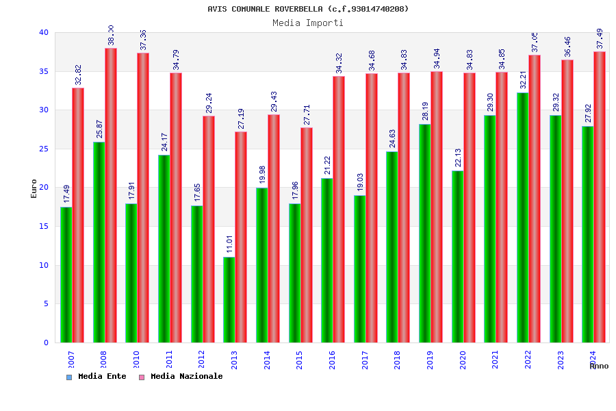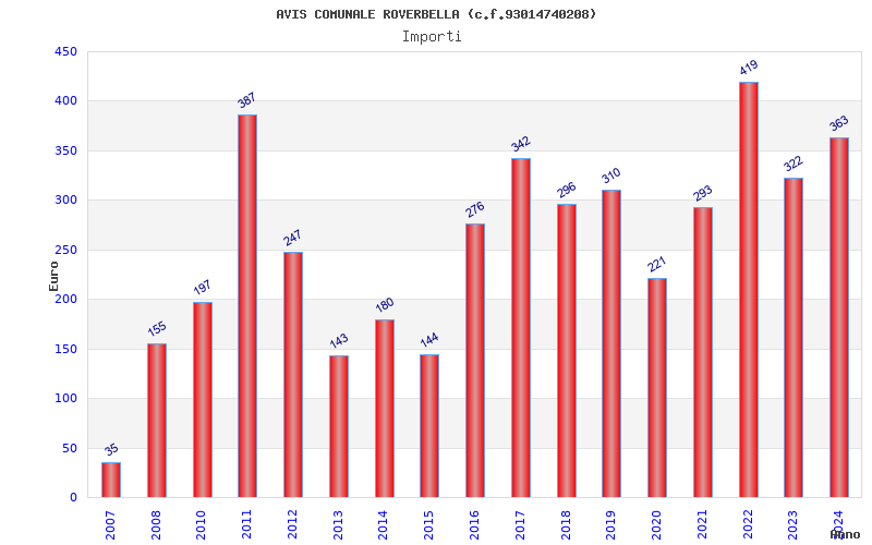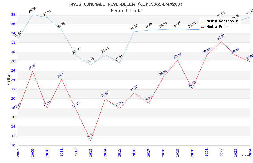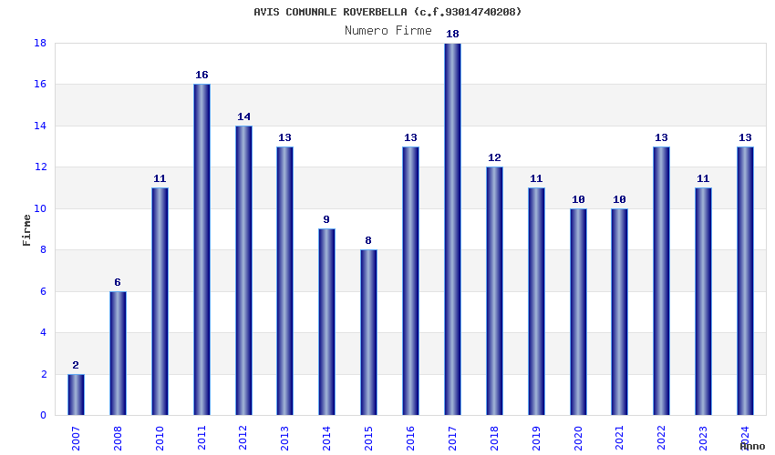 | Anno | Firme | Importi | Media | Naz. | Reg. | Prov. | Comu. |