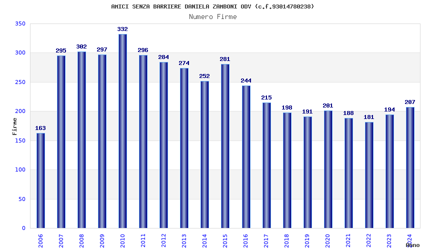 | Anno | Firme | Importi | Media | Naz. | Reg. | Prov. | Comu. |