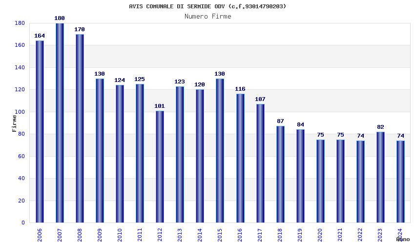 | Anno | Firme | Importi | Media | Naz. | Reg. | Prov. | Comu. |