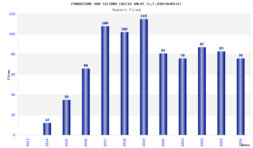 | Anno | Firme | Importi | Media | Naz. | Reg. | Prov. | Comu. |