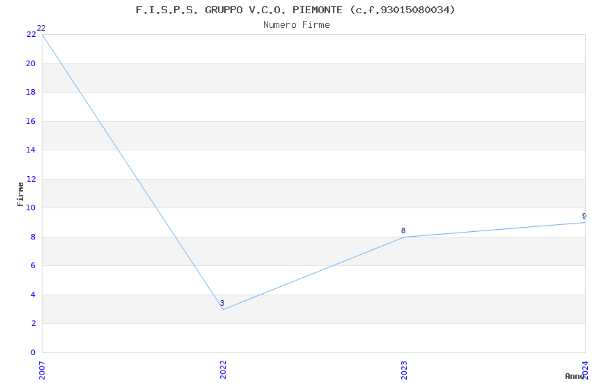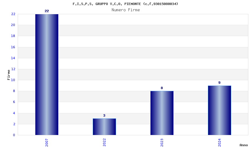 | Anno | Firme | Importi | Media | Naz. | Reg. | Prov. | Comu. |