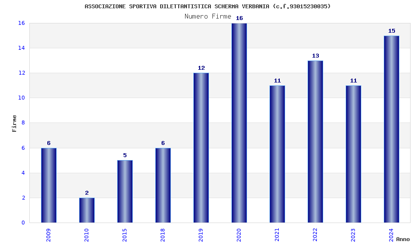 | Anno | Firme | Importi | Media | Naz. | Reg. | Prov. | Comu. |