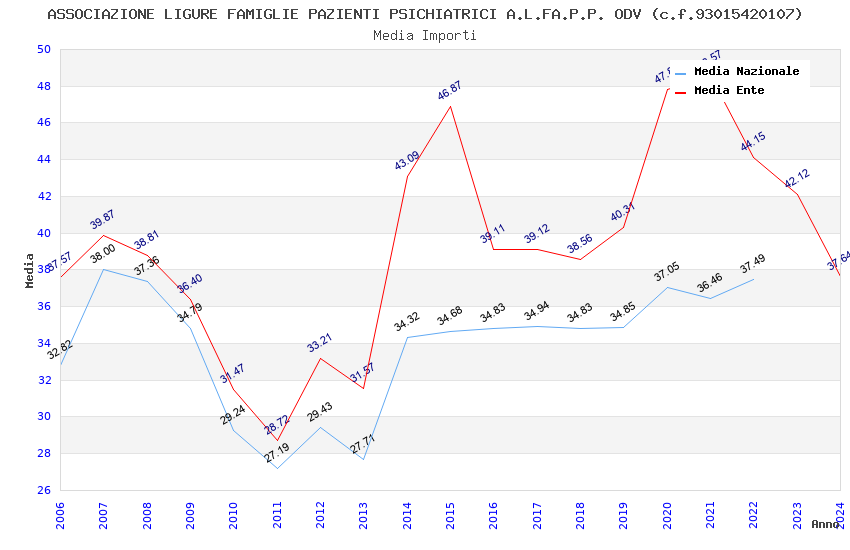 | Anno | Firme | Importi | Media | Naz. | Reg. | Prov. | Comu. |