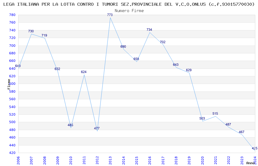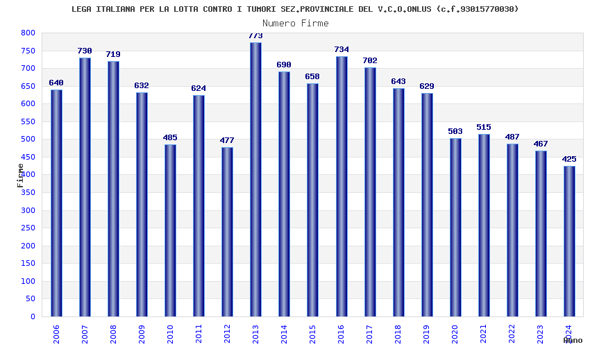 | Anno | Firme | Importi | Media | Naz. | Reg. | Prov. | Comu. |