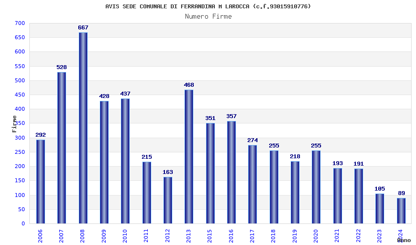 | Anno | Firme | Importi | Media | Naz. | Reg. | Prov. | Comu. |