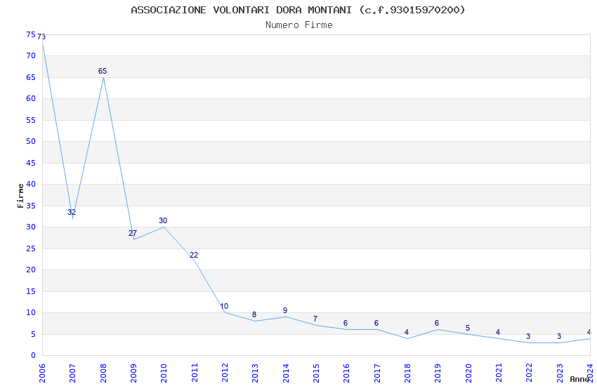 | 2006 | 73 | 1.454,25 | 19,92 | 17.297 | 4.407 | 191 | 8 |