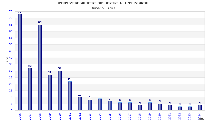 | Anno | Firme | Importi | Media | Naz. | Reg. | Prov. | Comu. |