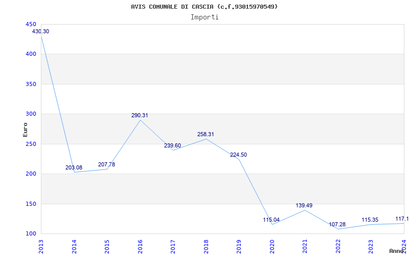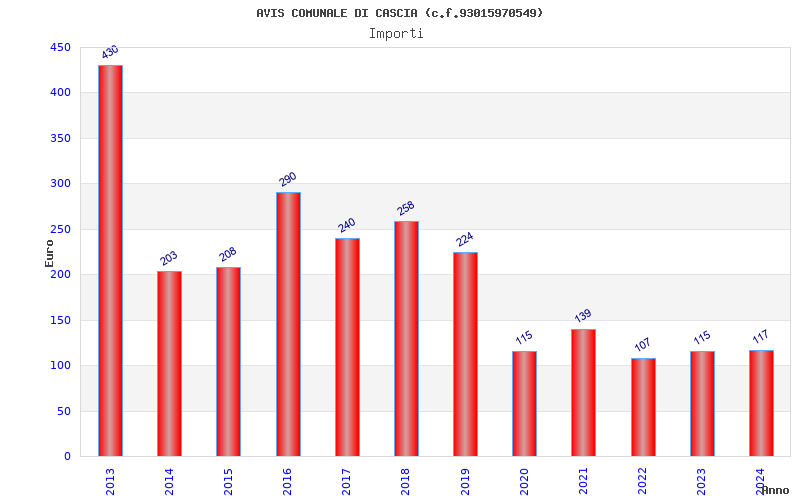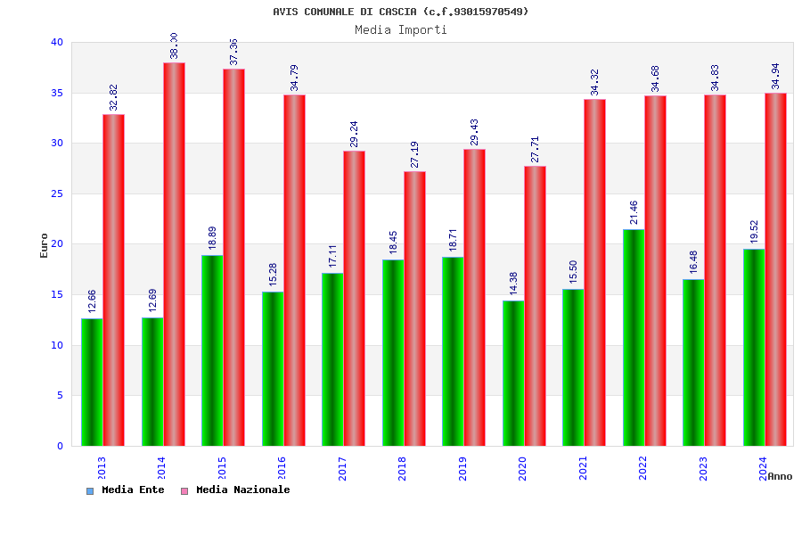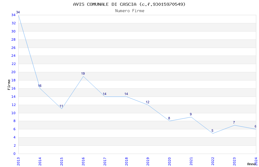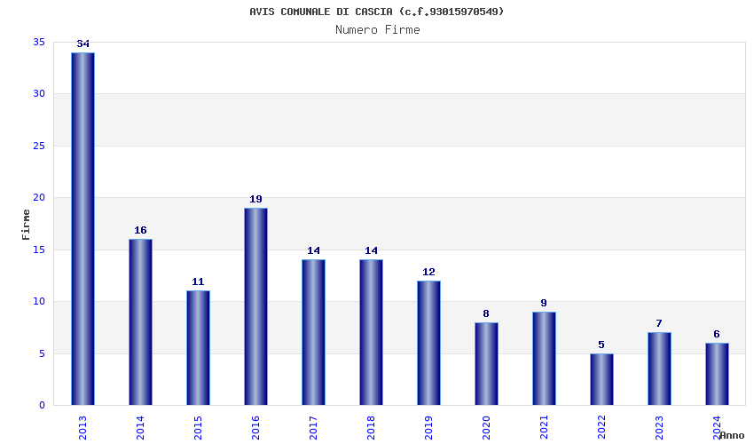 | Anno | Firme | Importi | Media | Naz. | Reg. | Prov. | Comu. |