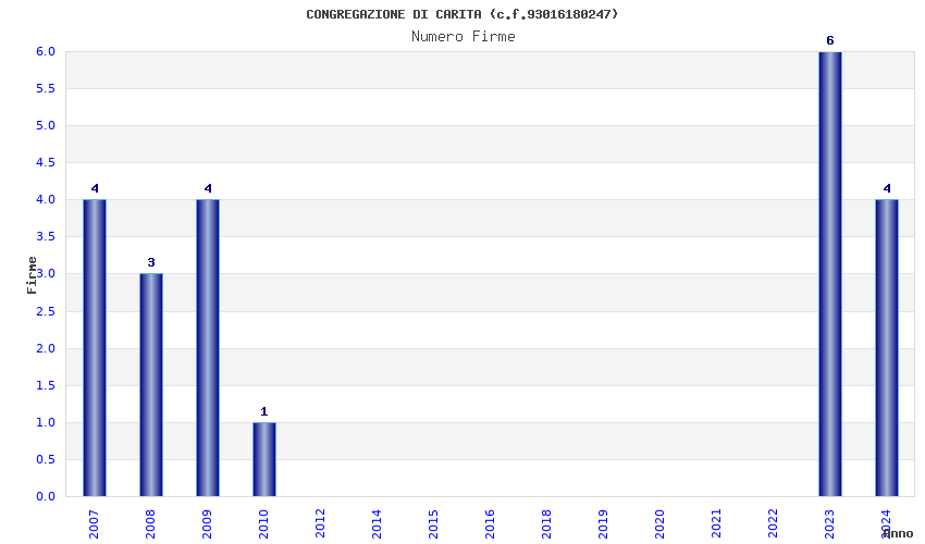 | Anno | Firme | Importi | Media | Naz. | Reg. | Prov. | Comu. |