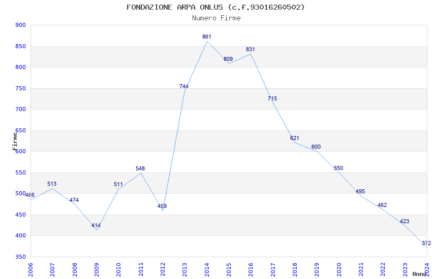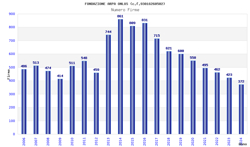 | Anno | Firme | Importi | Media | Naz. | Reg. | Prov. | Comu. |
