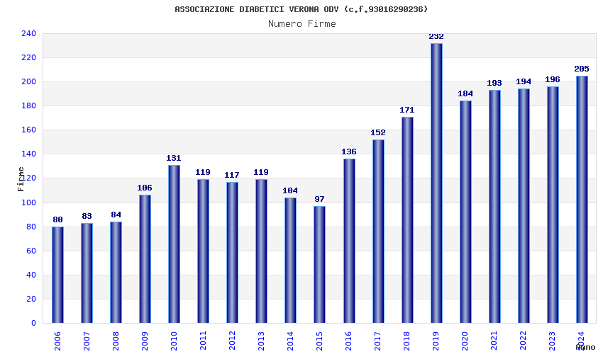 | 2019 | 232 | 6.782,97 | 29,24 | 8.068 | 736 | 170 | 95 |