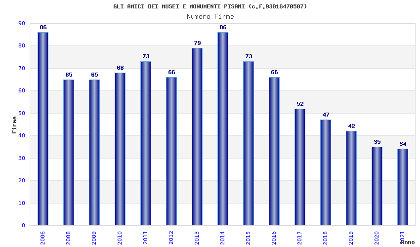 | Anno | Firme | Importi | Media | Naz. | Reg. | Prov. | Comu. |