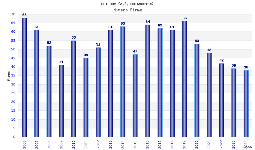 | Anno | Firme | Importi | Media | Naz. | Reg. | Prov. | Comu. |