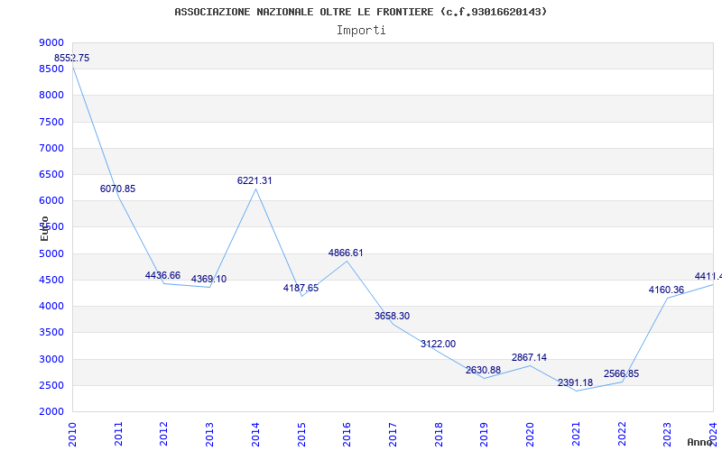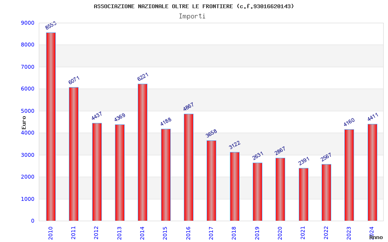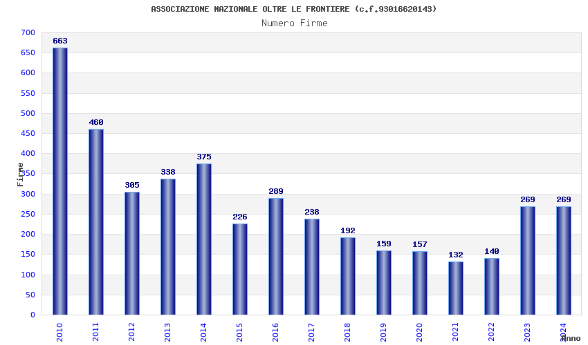 | Anno | Firme | Importi | Media | Naz. | Reg. | Prov. | Comu. |