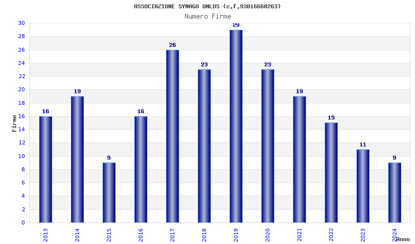 | Anno | Firme | Importi | Media | Naz. | Reg. | Prov. | Comu. |