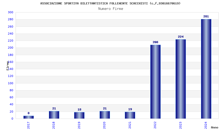 | Anno | Firme | Importi | Media | Naz. | Reg. | Prov. | Comu. |