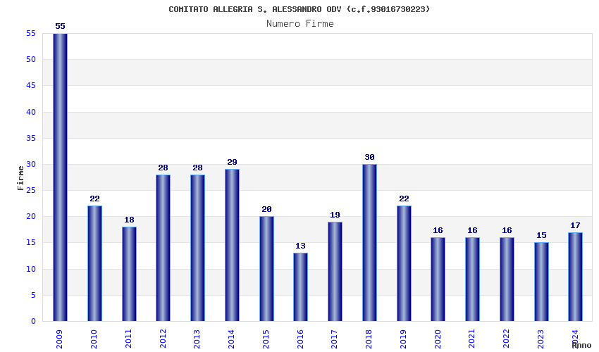 | Anno | Firme | Importi | Media | Naz. | Reg. | Prov. | Comu. |