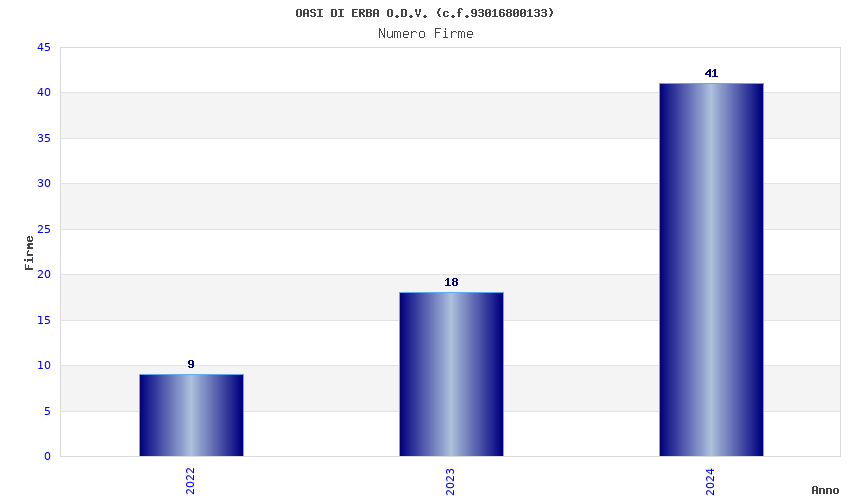 | Anno | Firme | Importi | Media | Naz. | Reg. | Prov. | Comu. |