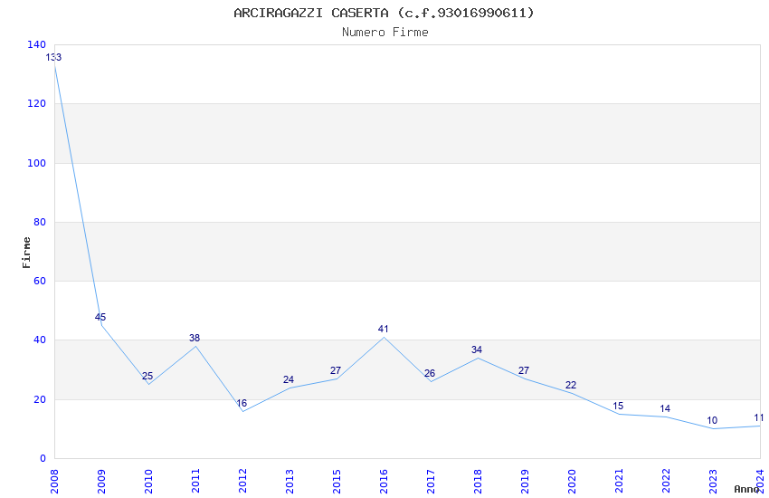 | 2008 | 133 | 4.000,00 | 30,08 | 9.853 | 503 | 64 | 15 |