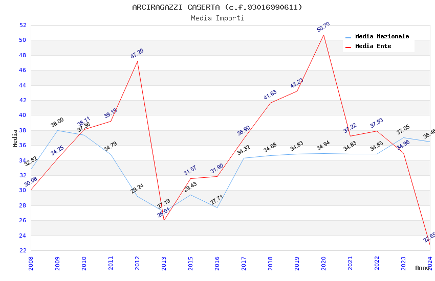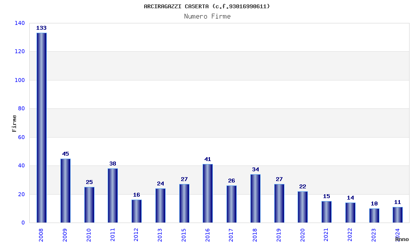 | Anno | Firme | Importi | Media | Naz. | Reg. | Prov. | Comu. |