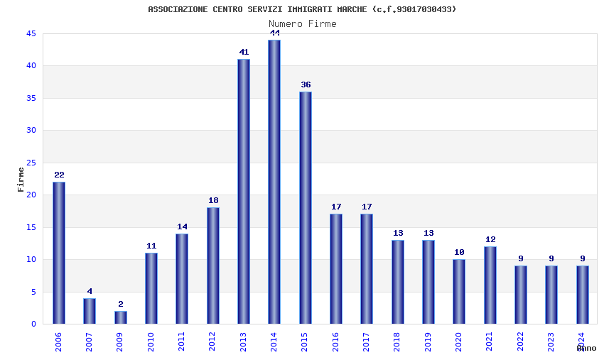 | Anno | Firme | Importi | Media | Naz. | Reg. | Prov. | Comu. |