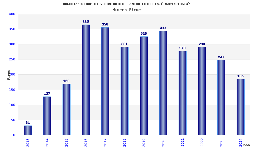 | 2024 | 185 | 6.530,13 | 35,30 | 8.083 | 552 | 73 | 2 |