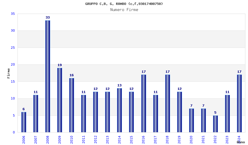 | Anno | Firme | Importi | Media | Naz. | Reg. | Prov. | Comu. |
