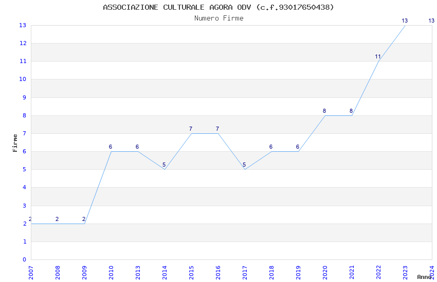 | 2023 | 13 | 443,40 | 34,11 | 50.124 | 1.316 | 235 | 52 |