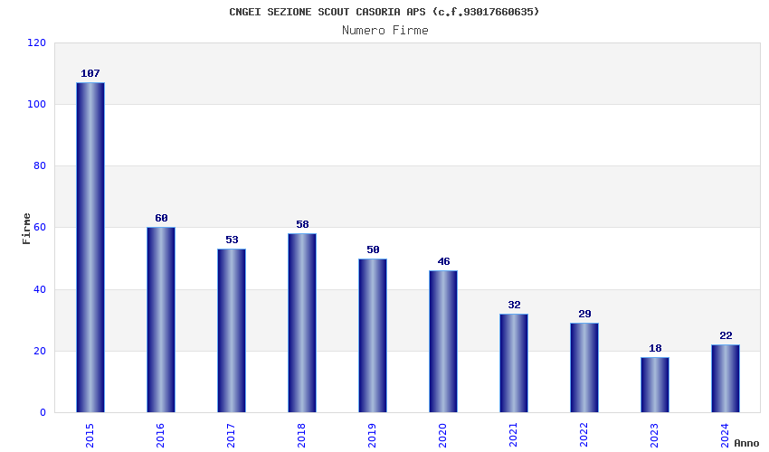 | 2015 | 107 | 2.847,19 | 26,61 | 17.155 | 954 | 517 | 13 |