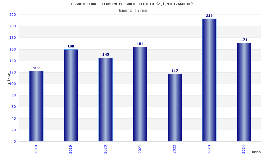 | Anno | Firme | Importi | Media | Naz. | Reg. | Prov. | Comu. |