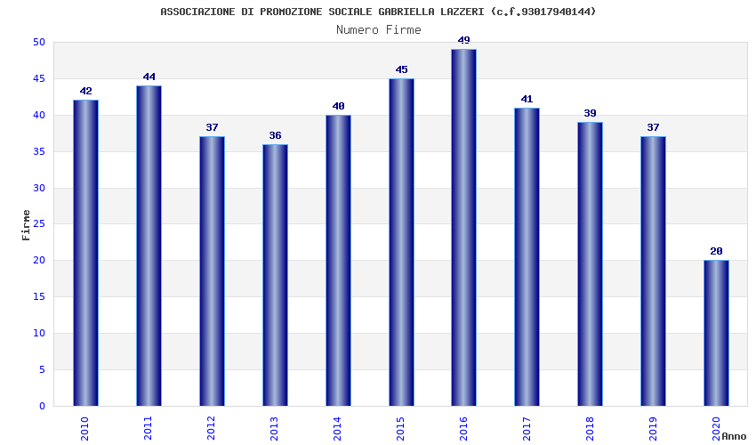 | Anno | Firme | Importi | Media | Naz. | Reg. | Prov. | Comu. |