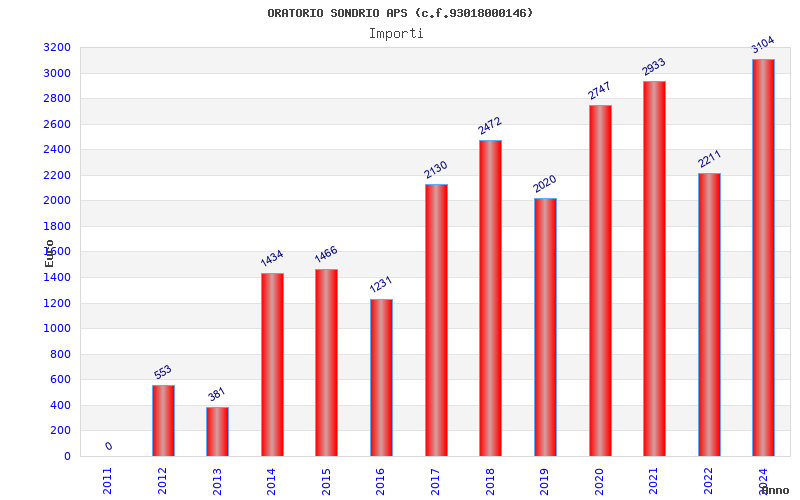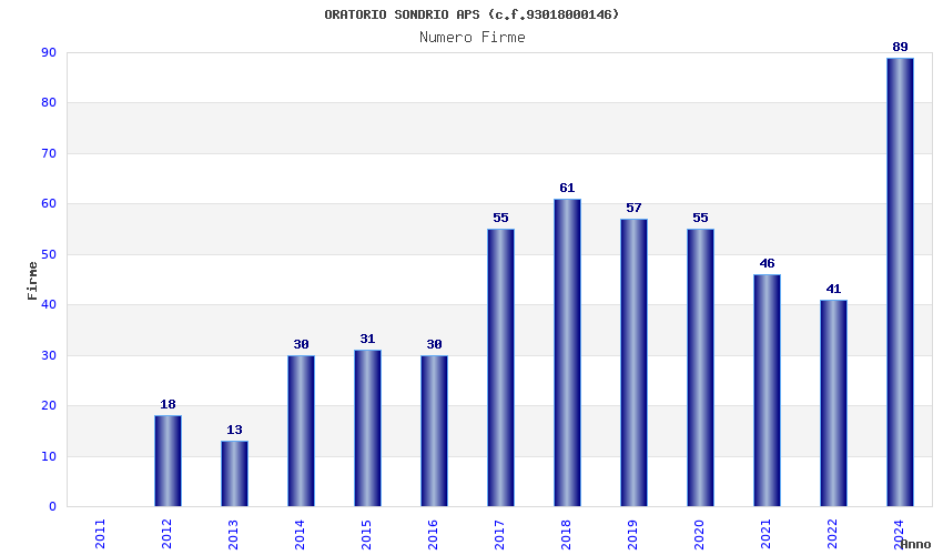 | Anno | Firme | Importi | Media | Naz. | Reg. | Prov. | Comu. |