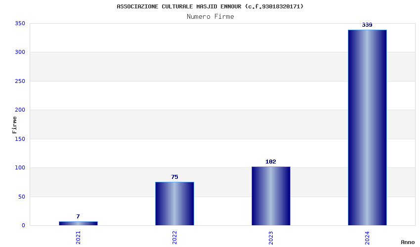 | Anno | Firme | Importi | Media | Naz. | Reg. | Prov. | Comu. |