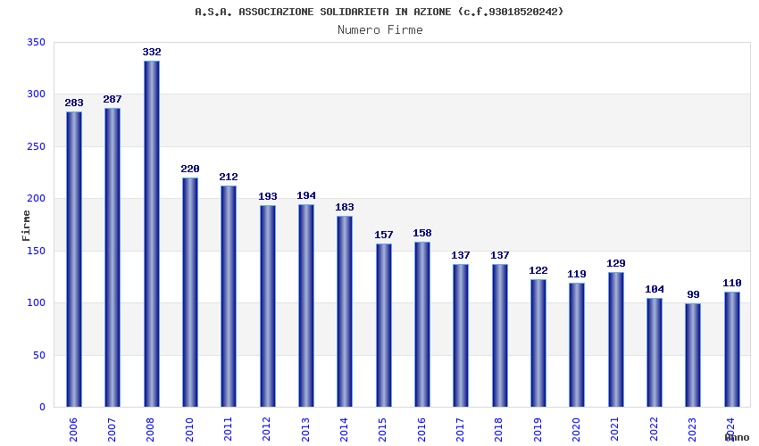 Anno Firme Importi Media Naz. Reg. Prov. Comu.