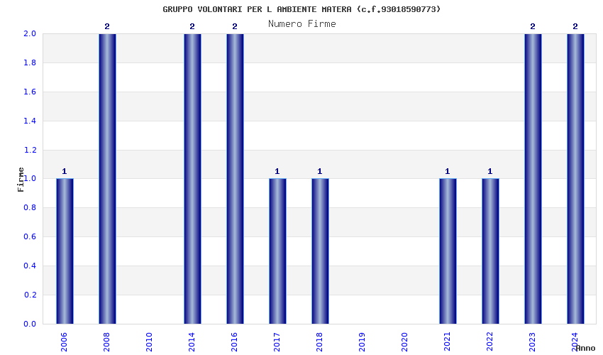 | Anno | Firme | Importi | Media | Naz. | Reg. | Prov. | Comu. |