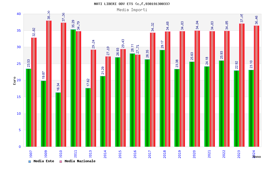 | Anno | Firme | Importi | Media | Naz. | Reg. | Prov. | Comu. |