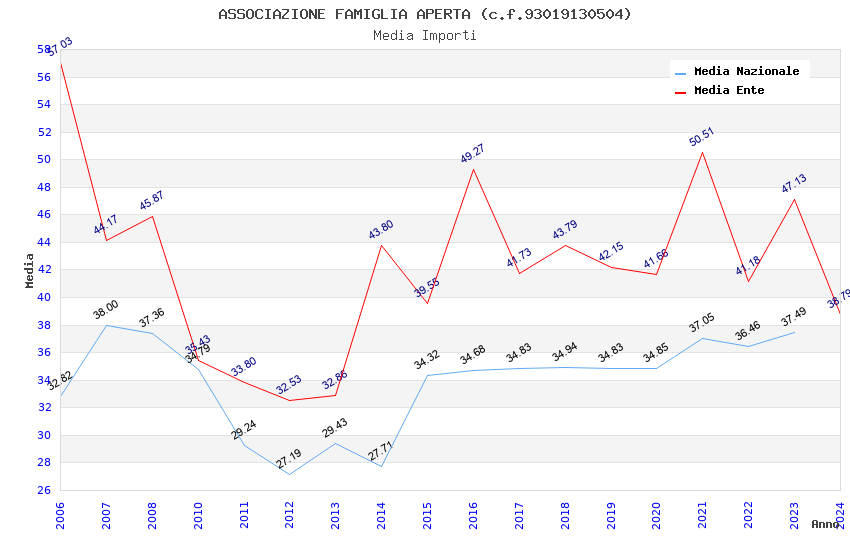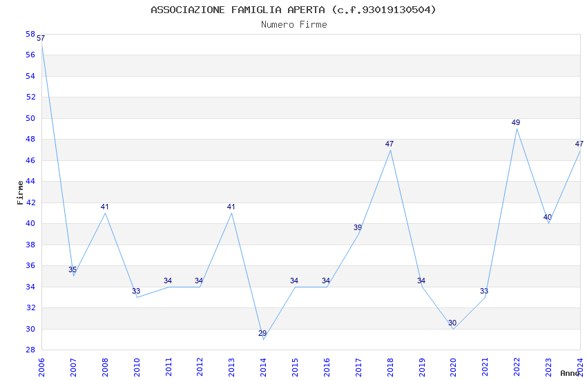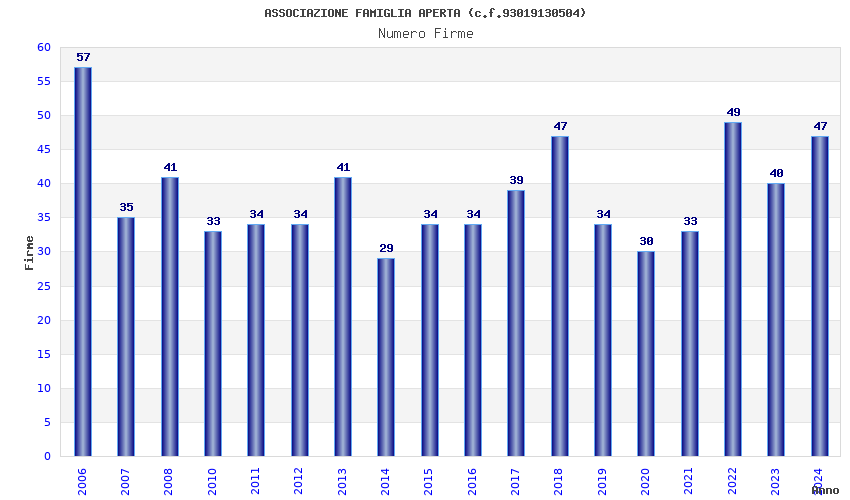 | Anno | Firme | Importi | Media | Naz. | Reg. | Prov. | Comu. |
