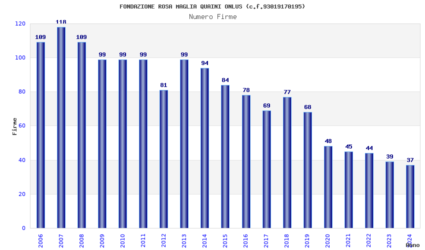 | Anno | Firme | Importi | Media | Naz. | Reg. | Prov. | Comu. |