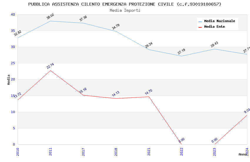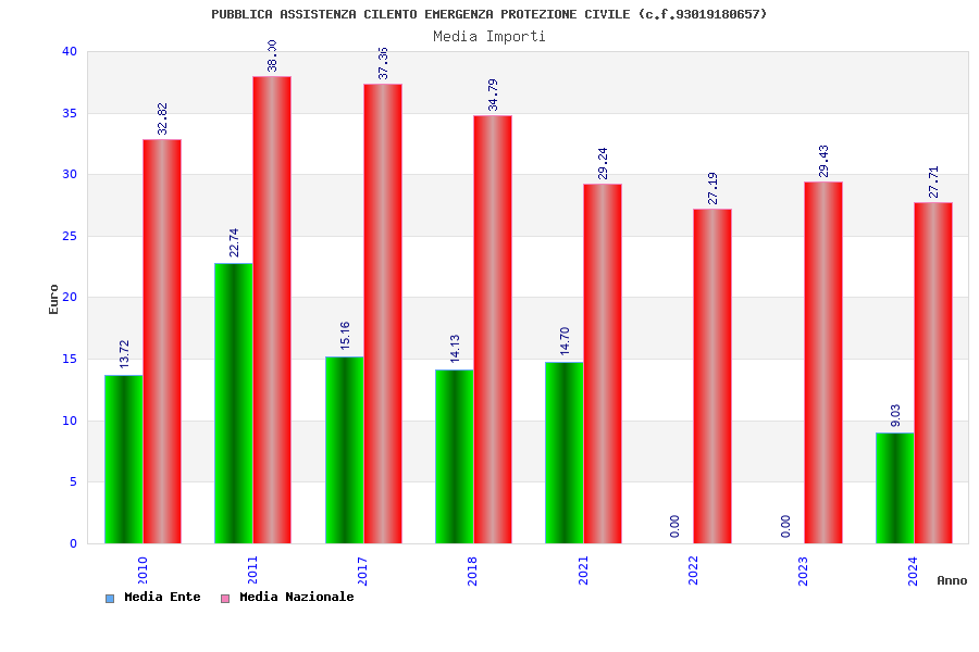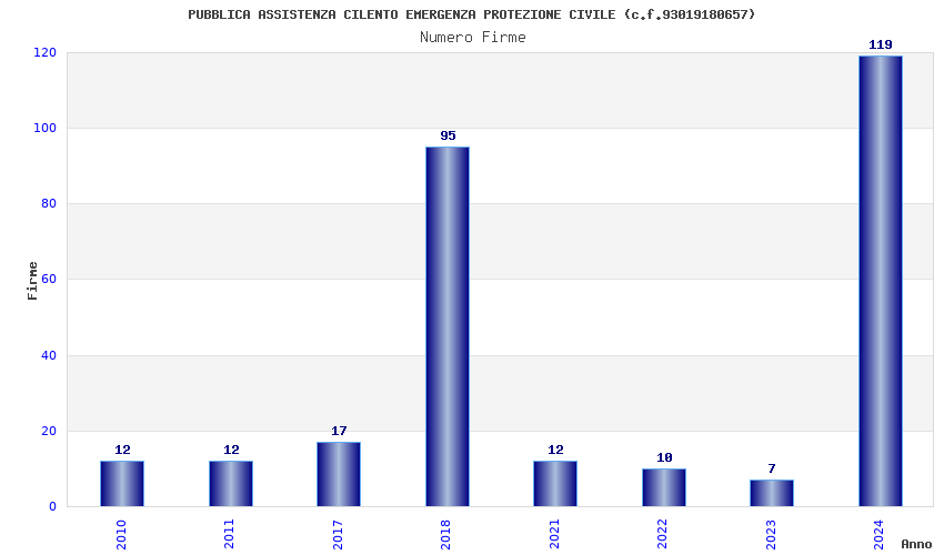 | Anno | Firme | Importi | Media | Naz. | Reg. | Prov. | Comu. |