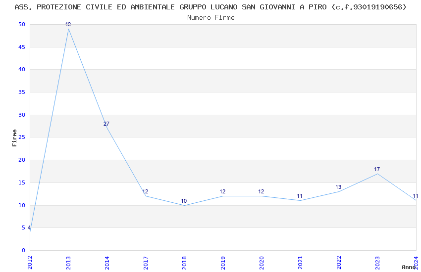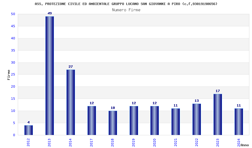 | Anno | Firme | Importi | Media | Naz. | Reg. | Prov. | Comu. |
