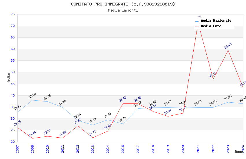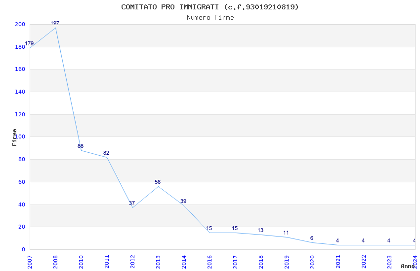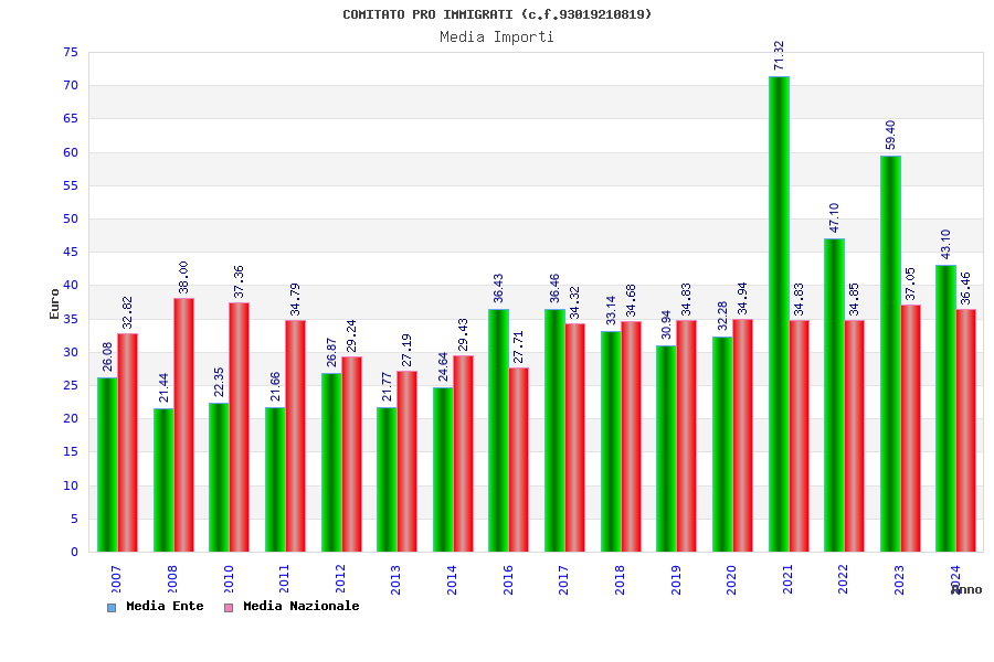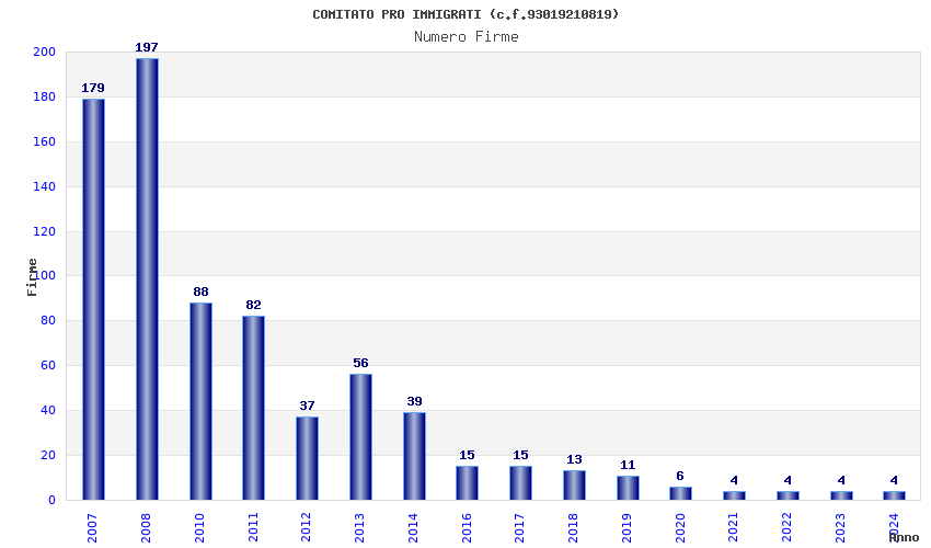 | Anno | Firme | Importi | Media | Naz. | Reg. | Prov. | Comu. |