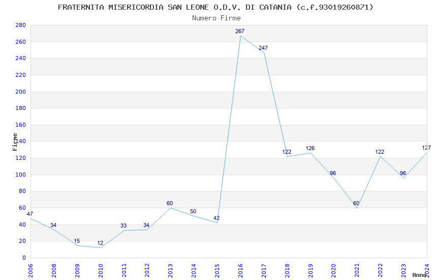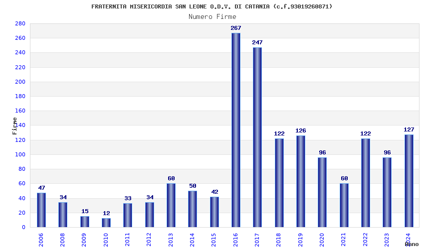 | 2016 | 267 | 4.454,10 | 16,68 | 12.232 | 701 | 134 | 60 |