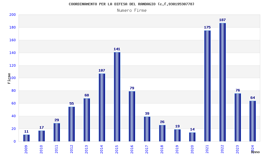 | 2022 | 187 | 4.789,76 | 25,61 | 11.031 | 77 | 22 | 10 |