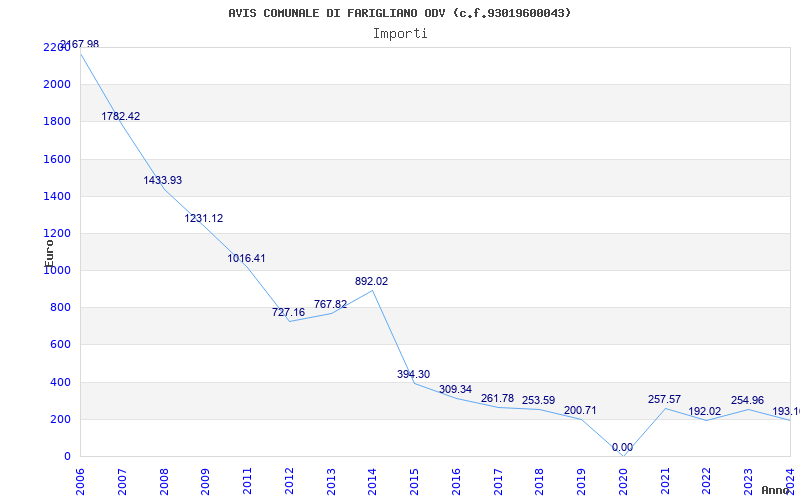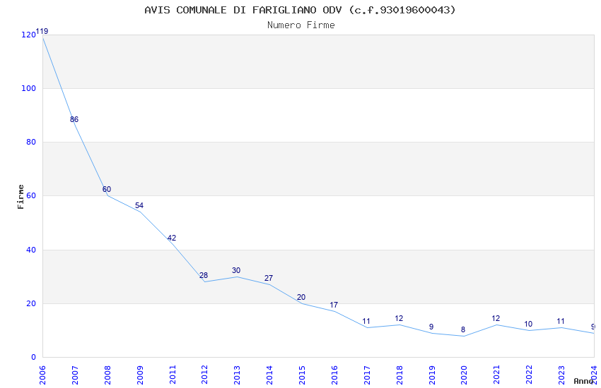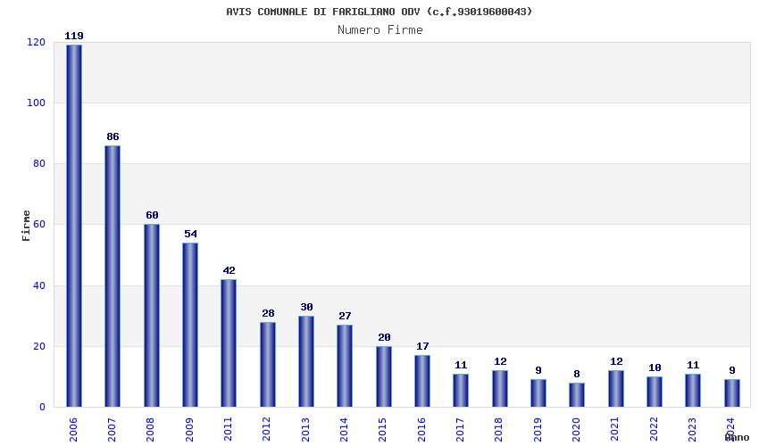 | Anno | Firme | Importi | Media | Naz. | Reg. | Prov. | Comu. |