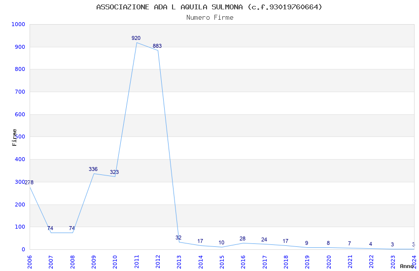 Anno Firme Importi Media Naz. Reg. Prov. Comu.