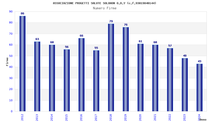 | Anno | Firme | Importi | Media | Naz. | Reg. | Prov. | Comu. |