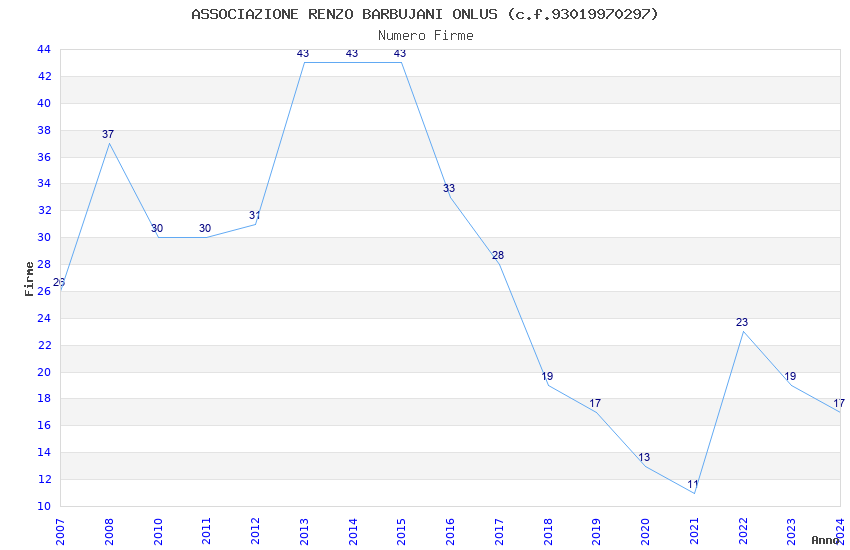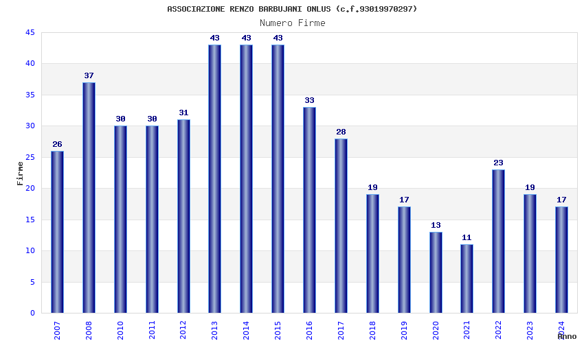 Anno Firme Importi Media Naz. Reg. Prov. Comu.